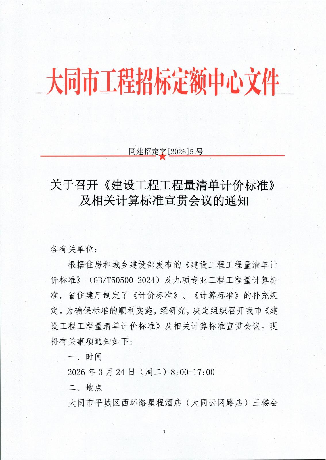 关于召开《建设工程量清单计价标准》及相关计算标准宣贯会议的通知